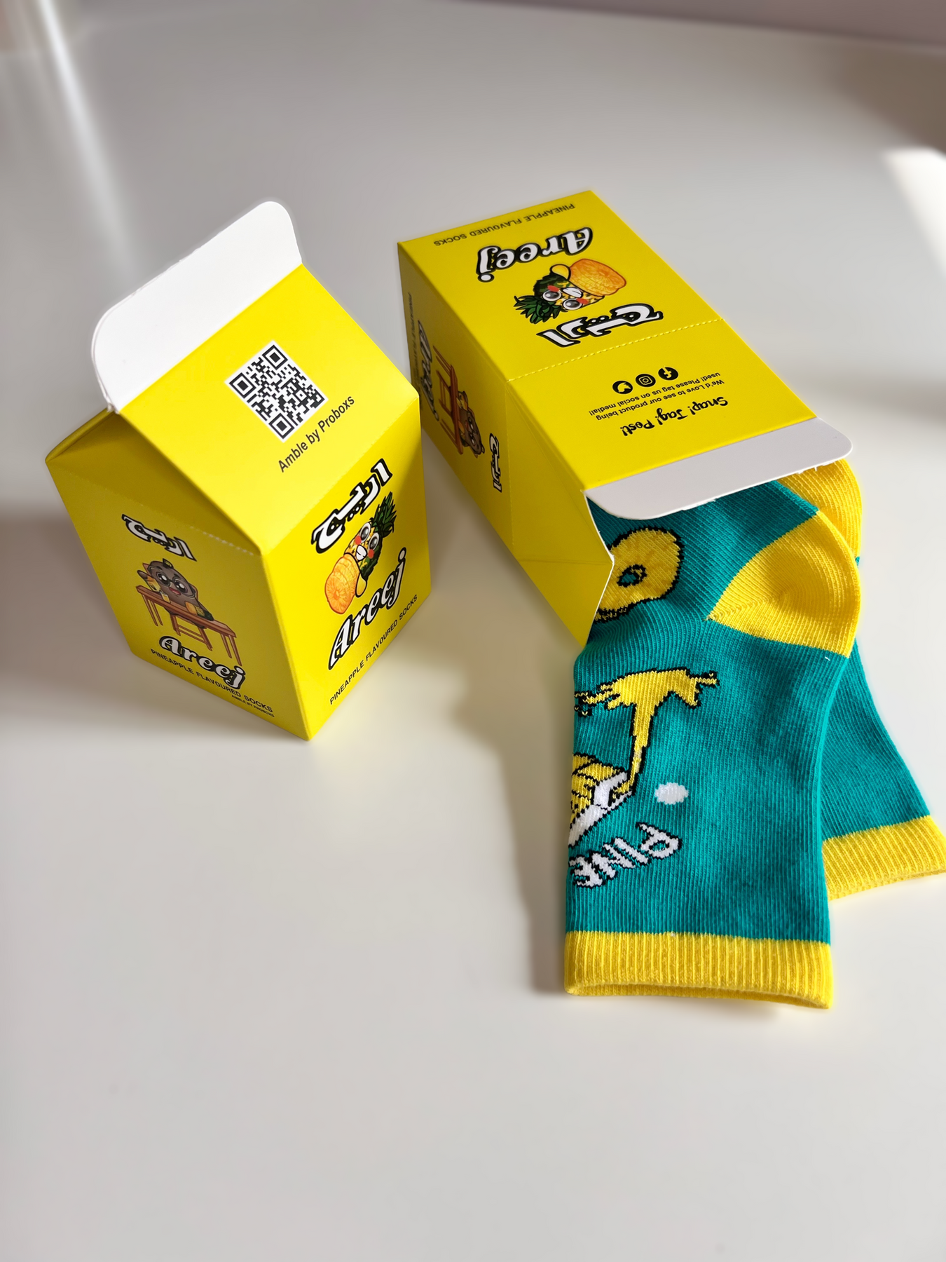 ستكون جوارب أريج بنكهة الأناناس هي الجوارب الجديدة المفضلة لديك، مستوحاة من مشروب الطفولة المفضل لدينا ومصنوعة من مواد عالية الجودة في الإمارات، فهي الجوارب المثالية لإضفاء البريق على يومك، يأتي في عبوة فريدة من نوعها ، مما يجعلها هدية رائعة للجميع!